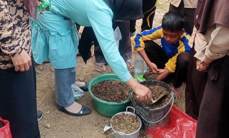 Para anggota Pramuka dari SMPN 2 Salomekko terlihat antusias mempraktikkan langkah-langkah pencampuran bahan, pengadukan, hingga proses pemeraman bokashi. Mereka diajarkan bagaimana mengatur kelembaban dan suhu agar proses fermentasi berjalan sempurna.
