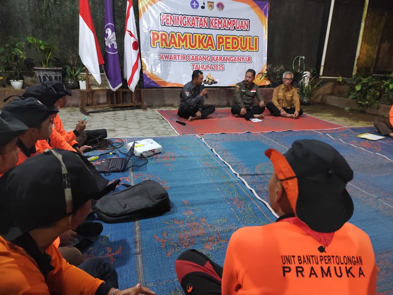 PRAMUKA.ID – Kwartir Cabang Gerakan (Kwarcab) Pramuka Karanganyar menggelar Peningkatan Kemampuan Pramuka Peduli pada Jumat–Sabtu, (7–8/11-2025) di Villa Pak San, Tawangmangu, Karanganyar.