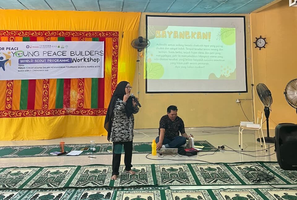 Salah satu fasilitator dari Peace Generation Aceh, Kak Nyanyak, menyampaikan rasa apresiasinya terhadap semangat peserta.