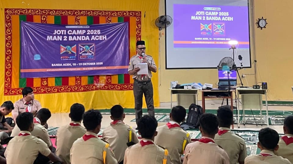 Kegiatan JOTI Camp MAN 2 Banda Aceh 2025 resmi dibuka oleh Ketua Majelis Pembimbing Gugus Depan (Ka. Mabigus) MAN 2 Banda Aceh, Kak Dr. Muzakkar Usman, S.Ag., M.Pd. Dalam sambutannya, beliau menyampaikan apresiasi dan rasa bangga atas terselenggaranya kegiatan yang menggabungkan nilai-nilai kepramukaan dengan penguasaan teknologi informasi di era digital. “Melalui kegiatan JOTI ini, kita belajar bukan hanya tentang teknologi, tetapi juga tentang makna persaudaraan dunia tanpa batas. Jadilah Pramuka yang bijak di dunia digital dan tetap berkarakter di dunia nyata,” pesan Kak Muzakkar sebelum membuka kegiatan secara resmi.