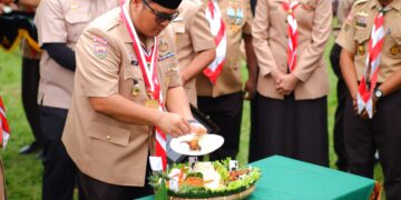 PRAMUKA.ID – Gebyar Hari Pramuka ke -63 tingkat kota Medan yang digelar di Lapangan Sejati, Kecamatan Medan Johor, Senin (23/9/24) berlangsung meriah. Selain diisi upacara Peringatan Hari Pramuka, dalam gebyar ini Gerakan Pramuka Kwarcab Kota Medan berhasil memecahkan rekor MURI Dunia dengan penampilan 64 tarian etnis daerah yang dibawakan oleh 1.200 anak-anak Pramuka.