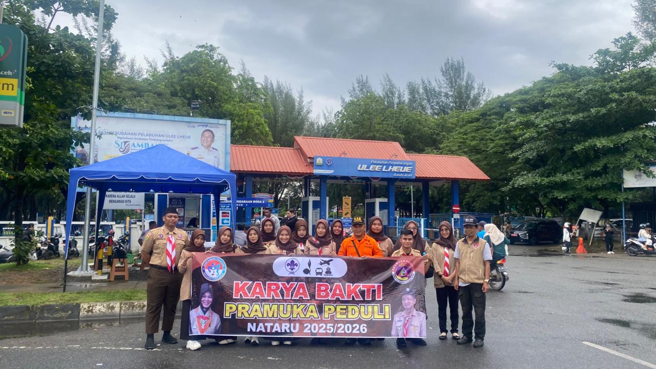 PRAMUKA.ID, Banda Aceh – Menurunkan 20 Personil Anggota Satgas Pramuka Peduli Kwartir Cabang Kota Banda Aceh kembali melaksanakan Karya Bakti Siaga Natal dan Tahun Baru 2025.Bertempat di Pelabuhan Penyebrangan Ulee Lheu, Pramuka Peduli Kwarcab Kota Banda Aceh membantu Kelancaran Pelaksanaan Jalur Laut dari Banda Aceh ke Sabang dan Tujuan Lainnya.
