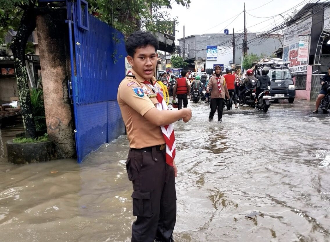 PRAMUKA.ID – Kota Tangerang Selatan – Tim Pramuka Peduli Kwartir Ranting Pondok Aren bergerak cepat melakukan aksi kemanusiaan di Perumahan Pondok Maharta dan Pondok Kacang Prima pada Minggu, 8 Maret 2026. Tim Pramuka Peduli bersama tim gabungan dengan beberapa unsur lainnya bersiaga sejak dini hari untuk membantu warga yang terdampak luapan air setinggi 100 cm.