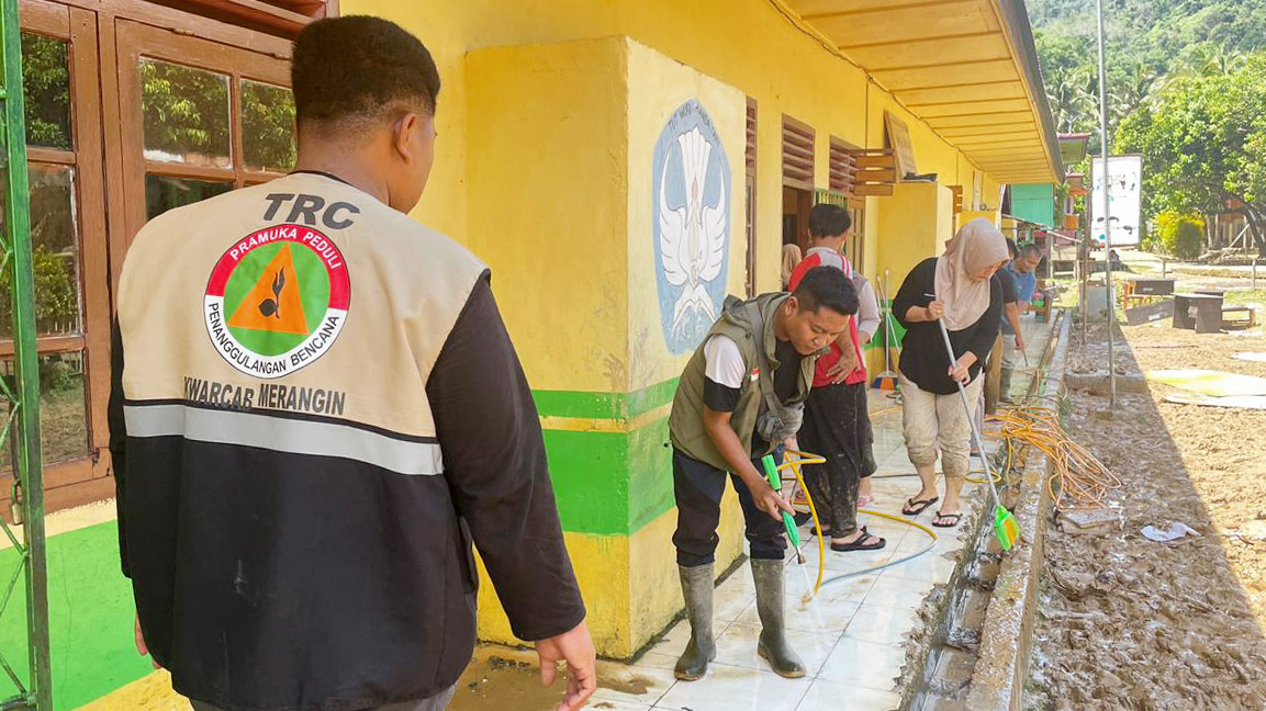 Suasana gotong royong begitu terasa. Anggota Pramuka Peduli bersama warga bahu-membahu membersihkan jalan, tempat ibadah, dan fasilitas umum lainnya yang terdampak. Meski kondisi masih becek dan penuh lumpur, semangat para relawan tidak surut. Mereka bekerja dengan penuh kepedulian demi membantu masyarakat agar dapat segera kembali beraktivitas.
