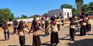 Pada hari Sabtu (02/11/2024) bertempat di halaman SD Inpres 3/77 Masago, kecamatan Patimpeng, Sulawesi Selatan. Bersama kakak Jamal dan kakak Agustina, para Pramuka penggalang melakukan latihan baris-berbaris yang diselingi permainan.