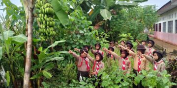 Dijelaskan kak Jamal, setelah pada semester kemarin siswa menanam sayuran dan pisang, maka pada semester ini komoditi hortikulturanya ditambah. Para anggota Pramuka penggalang SD ini juga terlibat langsung mulai dari penyiapan persemaian, pengolahan lahan, penanaman, pemeliharaan hingga panen.