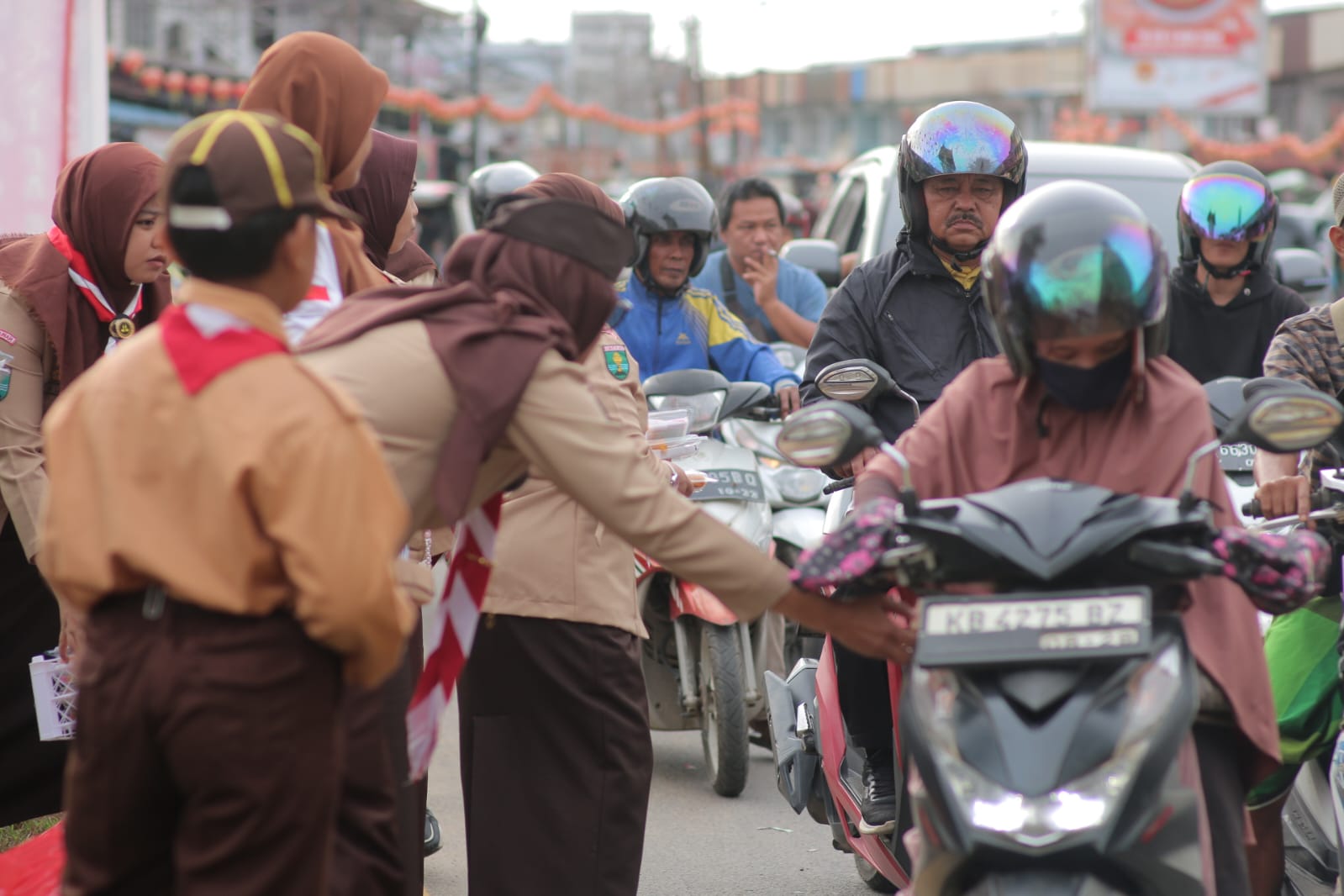 Kegiatan berlangsung dengan suasana hangat. Para anggota Pramuka tampak antusias membagikan takjil, sementara masyarakat menyambutnya dengan penuh apresiasi.