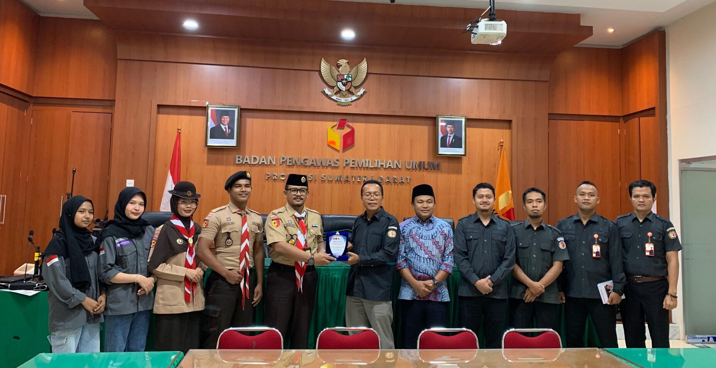 Delegasi dipimpin Ketua Dewan Racana Putra UNP, M. Latik Lubis, didampingi Pembina Gugus Depan, Dr. Alim Harun Pamungkas. Rombongan diterima langsung oleh Ketua Bawaslu Sumbar, Alni, SH., M.Kn., bersama Koordinator Divisi Pencegahan, Partisipasi, dan Hubungan Masyarakat, Muhamad Khadafi, S.Kom.
