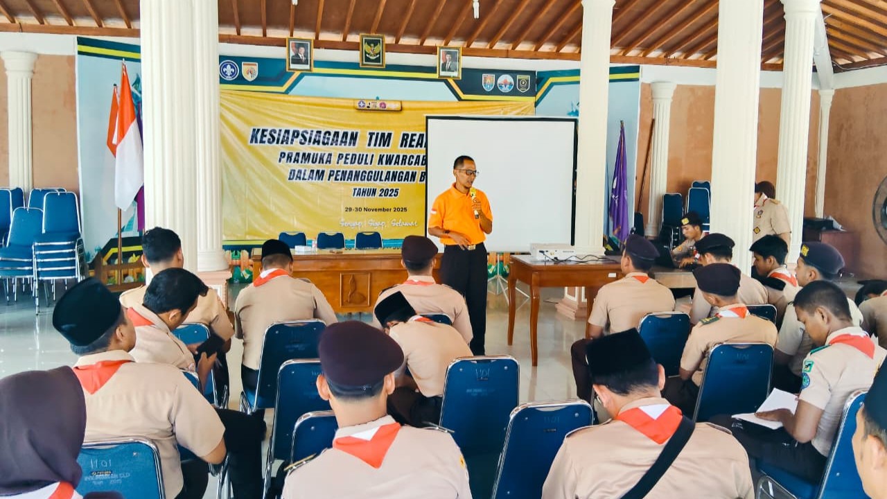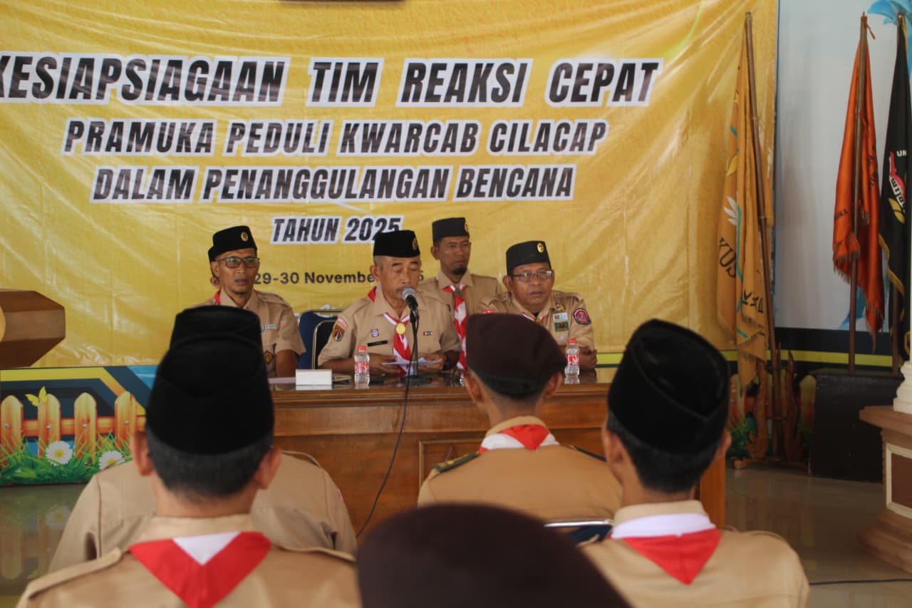 Bertempat di Pendopo Kwarcab Cilacap Ketua Kwarcab melalui Kak U’ong Suparno, S.Sos.,M.Si selaku Waka Bidang Abdimas dan Pramuli Kwarcab Cilacap Resmi membuka Pelatihan Kesiapsiagaan Tim Reaksi Cepat dalam Penanggulangan Bencana yang akan berlangsung pada hari Sabtu-Minggu, 29-30 November 2025.