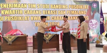 PRAMUKA.ID – Kegiatan Studi Banding Pelatih pembina Pramuka yang tergabung dalam Pusdiklatcab Putera Kusumah kabupaten Bekasi kwarda Jawa Barat ke pusdiklatcab Banyumas kwarda Jawa tengah dilaksanakan pada hari Sabtu, 20 Juli 2024. Peserta Studi Banding yaitu 25 orang Pelatih Pusdiklatcab dan melakukan perjalanan ke Banyumas menempuh perjalanan dalam waktu sekitar 6 jam menuju kab. Banyumas, tepatnya ke Bumi Perkemahan Kendalisada. Sesampainya di Buper Kendalisada, peserta studi banding mendapat sambutan hangat dari para Pelatih Pusdiklatcab Banyumas. Kegiatan studi banding ini atas usulan dari Pelatih Pusdiklatnas (kak layen) pada kegiatan Pitaran Pelatih Purwasukasi 2024 di Karawang bulan Juni kemarin.