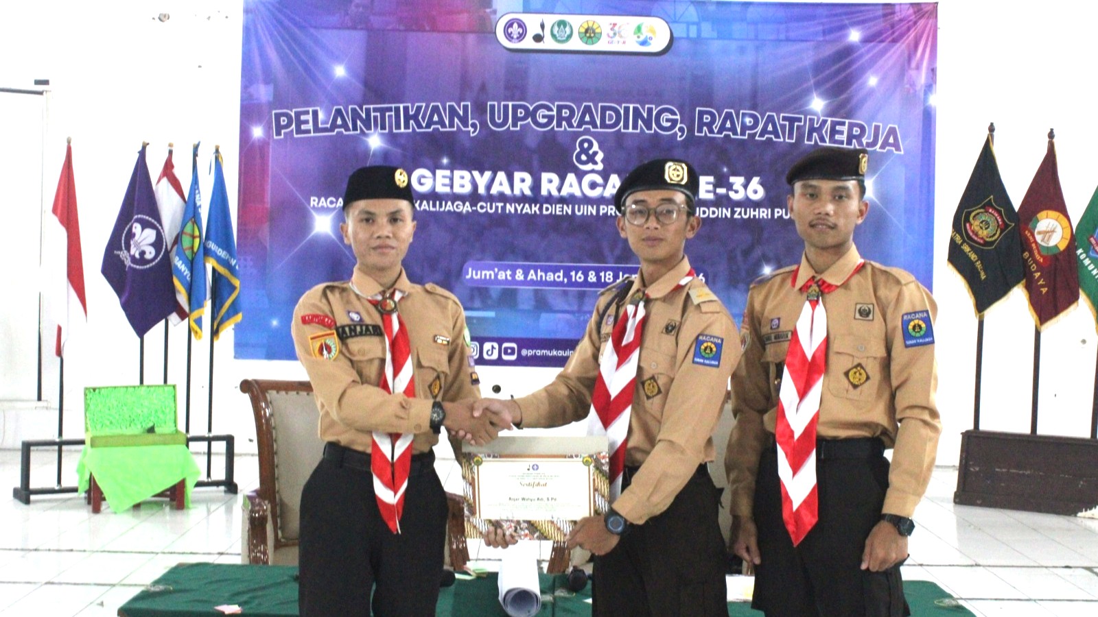 PRAMUKA.ID – Racana Sunan Kalijaga, Cut Nyak Dien UIN Prof. K.H. Saifuddin Zuhri (UIN Saizu) Purwokerto menggelar kegiatan upgrading sebagai upaya meningkatkan kapasitas individu dan penguatan tata kelola organisasi, Sabtu (17/1/2026), bertempat di Gedung Student Center UIN Saizu Purwokerto.