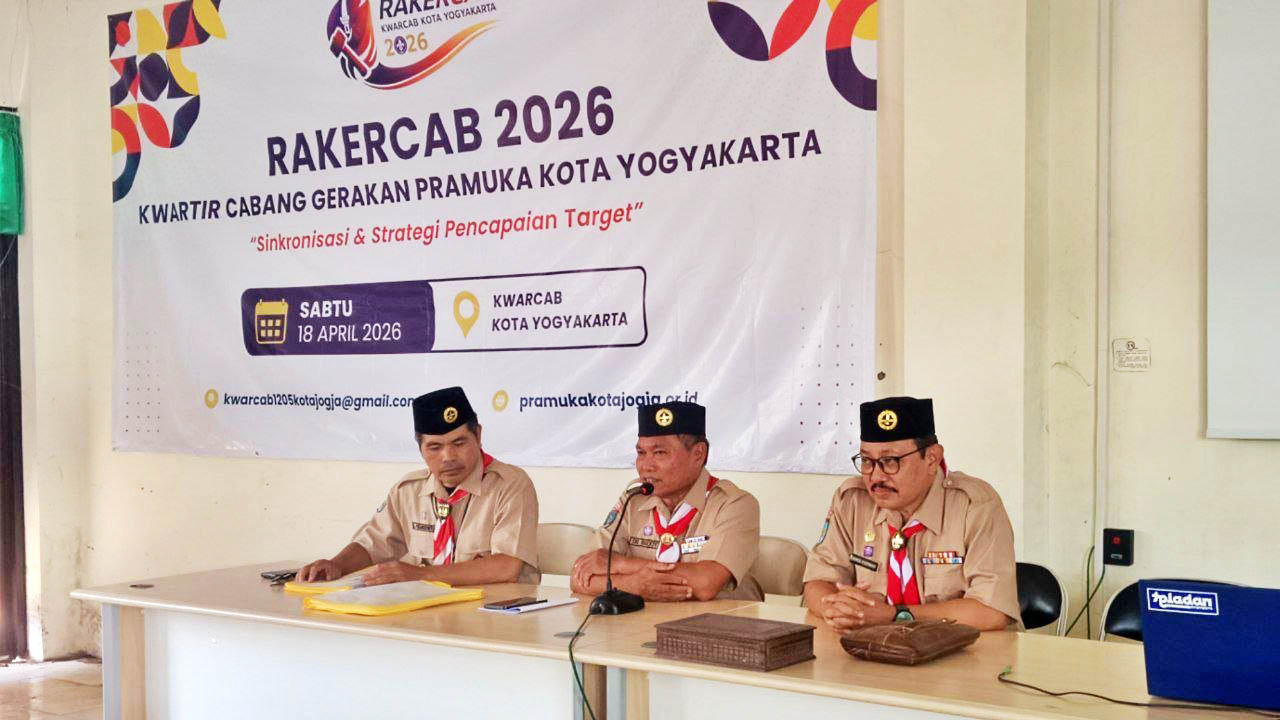 PRAMUKA.ID – Kwartir Cabang (Kwarcab) Gerakan Pramuka Kota Yogyakarta telah menyelenggarakan Rapat Kerja Cabang (Rakercab) Tahun 2026 pada Sabtu, 18 April 2026, bertempat di Aula Kwartir Cabang Kota Yogyakarta.