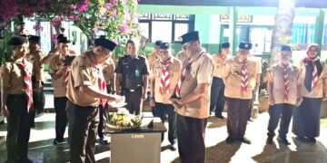 PRAMUKA.ID – Upacara renungan ulang janji menyambut HUT ke-63 Gerakan Pramuka diselenggarakan oleh Kwartir Cabang (Kwarcab) Karanganyar di halaman SMKN 2 Karanganyar, Selasa (13/8) malam.