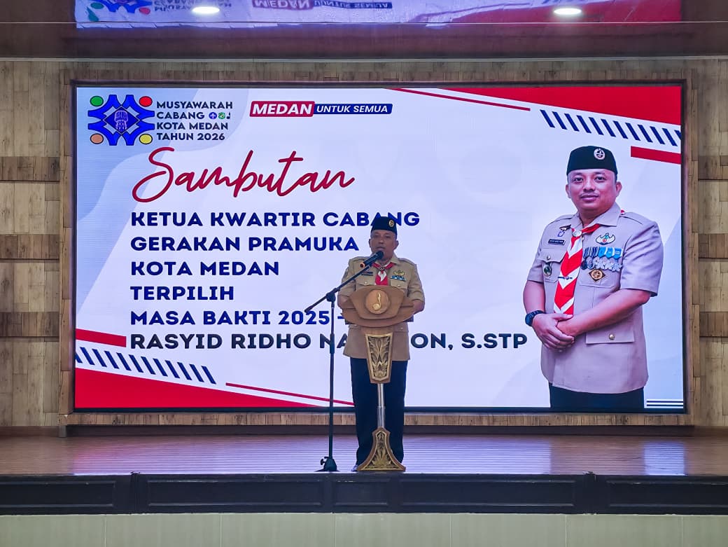 PRAMUKA.ID – Medan, Rasyid Ridho Nasution, S.STP resmi terpilih sebagai Ketua Kwartir Cabang (Kwarcab) Gerakan Pramuka Kota Medan Masa Bakti 2025-2030. Pemilihan berlangsung dalam Musyawarah Cabang (Muscab) Kwarcab Kota Medan yang digelar di Gedung Serbaguna PKK, Kota Medan, (14/2) dan berjalan lancar dengan dukungan sepenuhnya dari Kwartir Ranting.