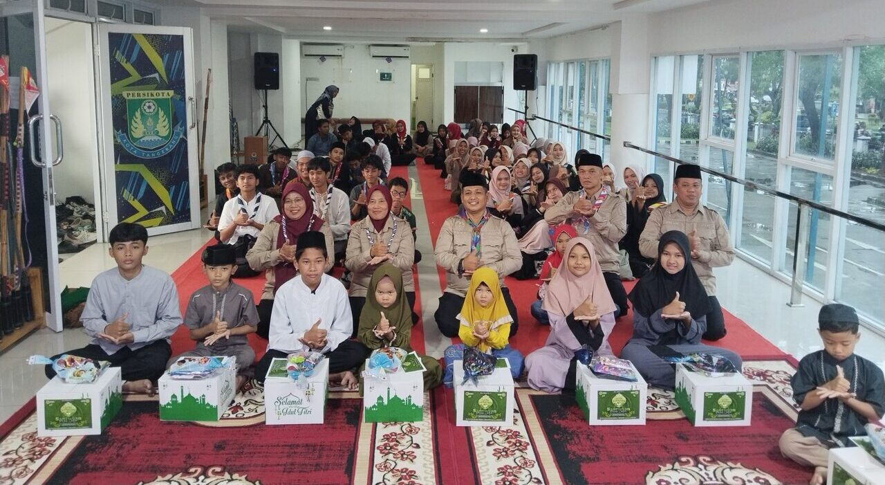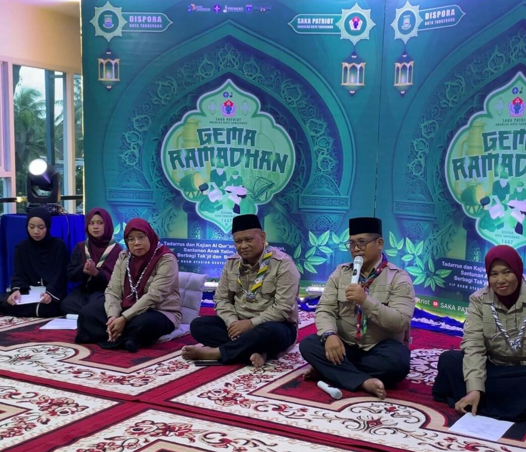 PRAMUKA.ID – Kota Tangerang – Rintisan Saka Patriot Kwartir Cabang Kota Tangerang menggelar Gema Ramadhan yang diikuti sebanyak 82 Pramuka Penegak. Bersamaan dengan itu dilakukan pula santunan kepada 33 yatim yang digelar di ruang VIP Stadion Benteng Reborn, Kota Tangerang, Sabtu 7 Maret 2026.