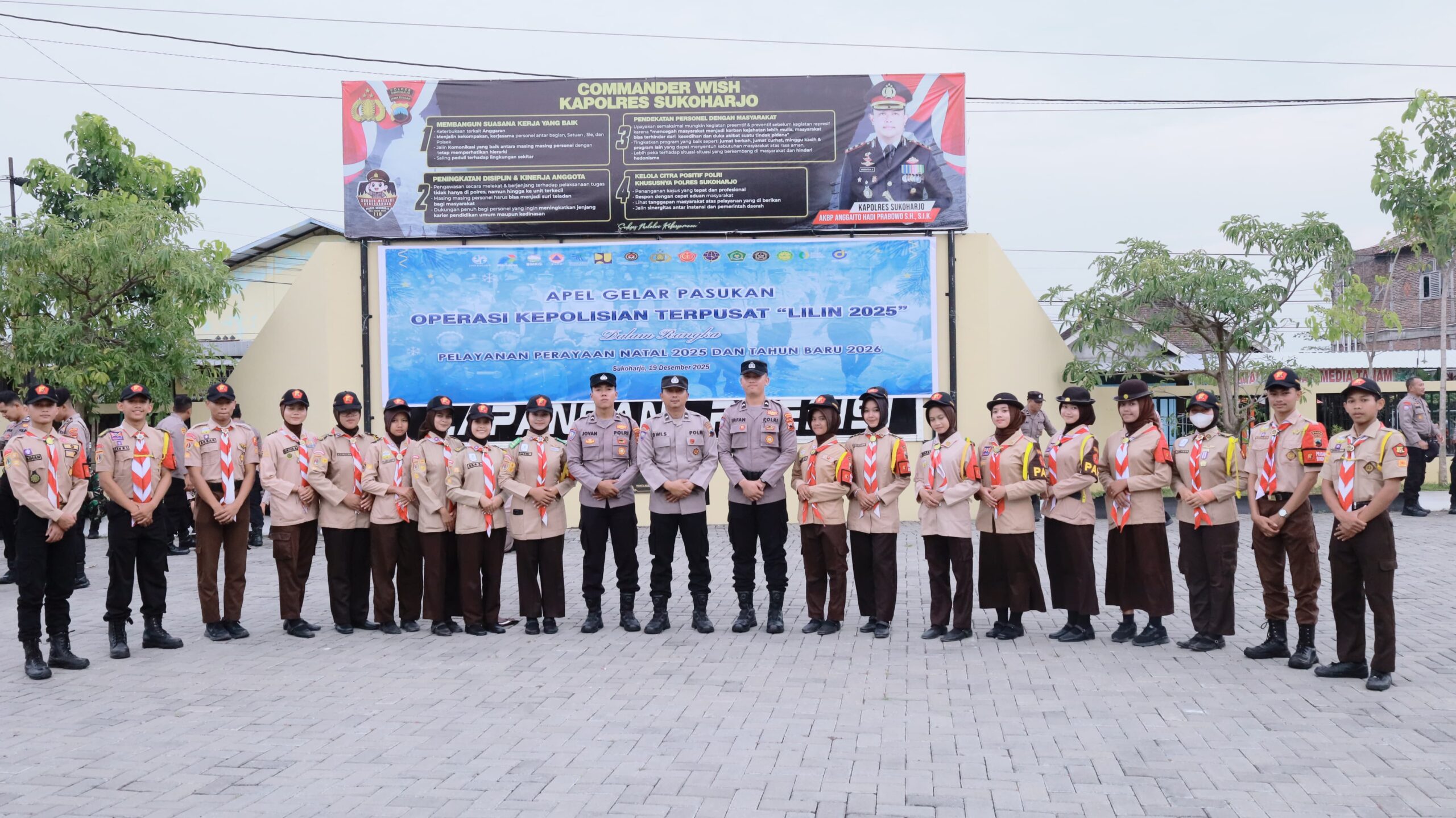 PRAMUKA.ID – Sukoharjo, Saka Bhayangkara Polres Sukoharjo turut mengikuti Apel Gelar Pasukan Operasi Kepolisian Terpusat Lilin 2025 yang digelar di Lapangan Presisi Polres Sukoharjo, Jumat sore, 19 Desember 2025. Kegiatan ini dilaksanakan dalam rangka memastikan kesiapan pengamanan perayaan Natal 2025 dan Tahun Baru 2026.