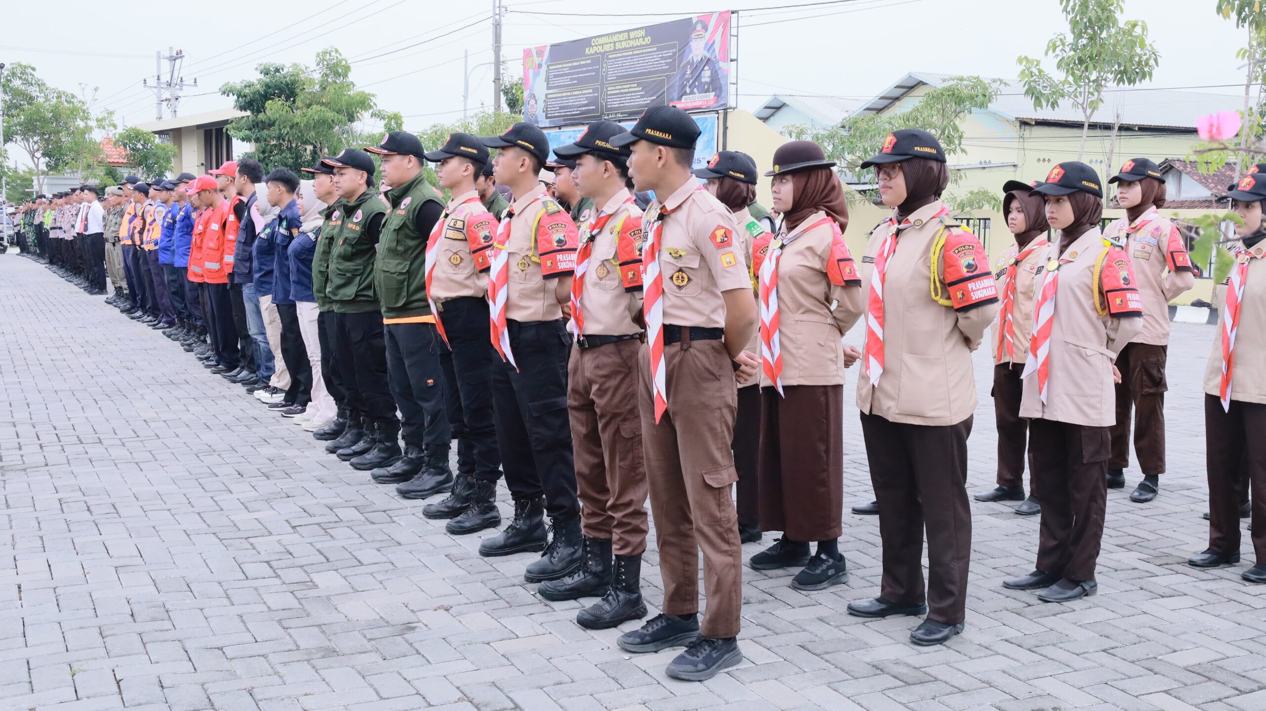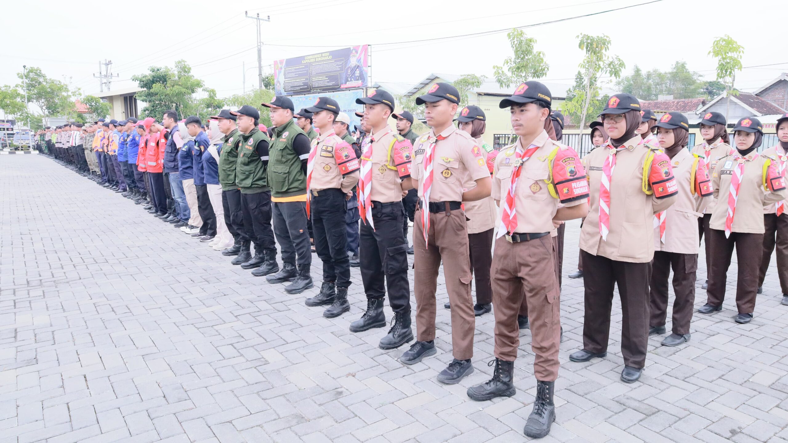 Apel gelar pasukan dipimpin oleh Wakil Bupati Sukoharjo, Eko Sapto Purnomo, S.E., didampingi Kapolres Sukoharjo AKBP Anggaito Hadi Prabowo serta Kasdim 0726/Sukoharjo Letkol Inf. Reza Sahputra. Kegiatan diikuti oleh personel gabungan dari TNI, Polri, Satpol PP, Dinas Perhubungan, Dinas Kesehatan, BPBD, Pemadam Kebakaran, serta Pramuka Saka Bhayangkara Polres Sukoharjo.
