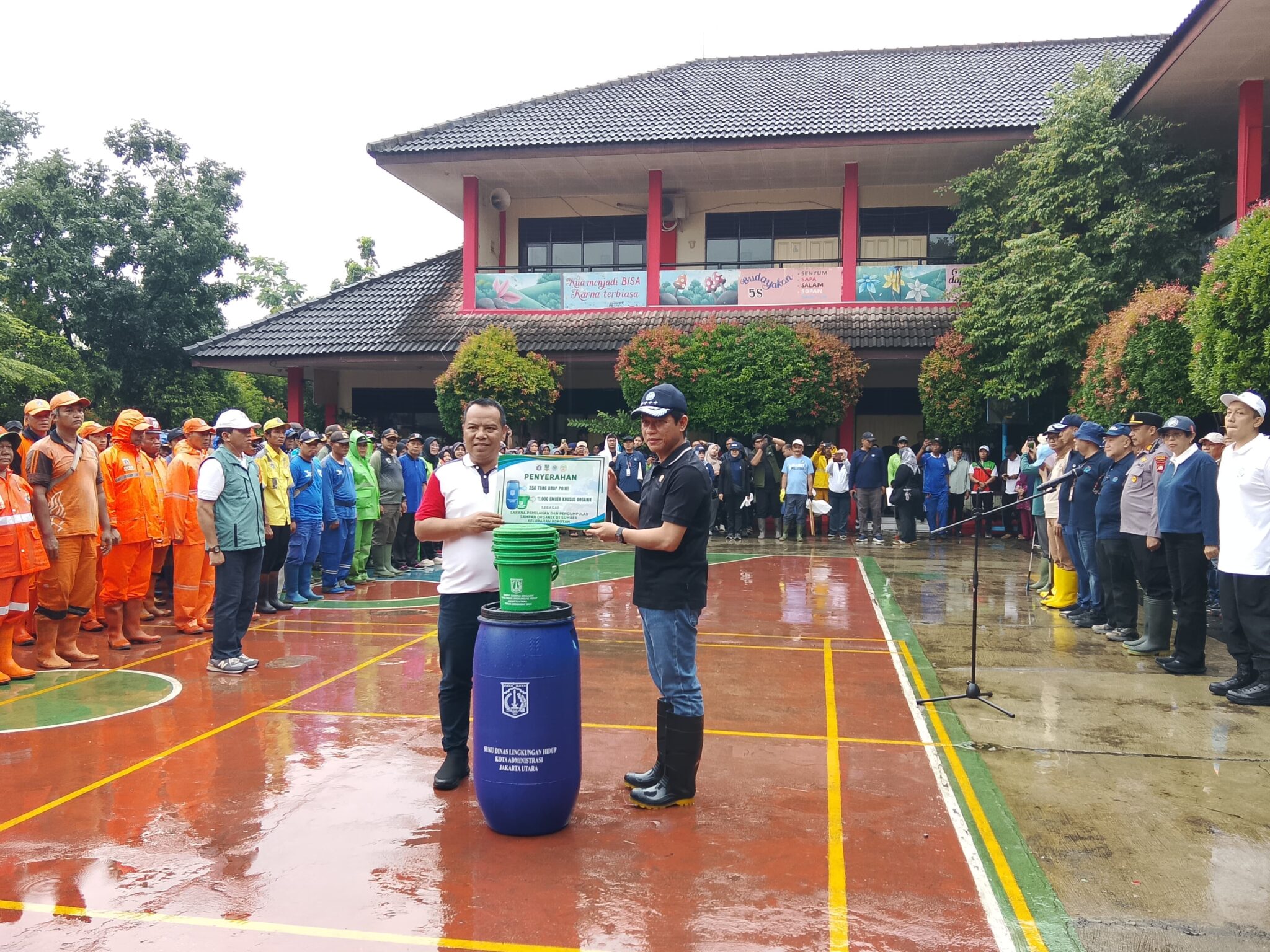 Kegiatan yang dimulai pukul 06.30 WIB tersebut melibatkan berbagai unsur, mulai dari Suku Dinas Lingkungan Hidup Jakarta Utara, aparatur wilayah, hingga masyarakat setempat. Anak-anak Pramuka Saka Kalpataru turut ambil bagian secara aktif dalam aksi bersih-bersih lingkungan.