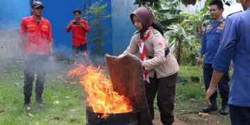 PRAMUKA.ID – Saka Kwarcab Banyumas yang terdiri dari Saka Wira Kartika Kodim 0701/Banyumas, Saka Milenial Dinkominfo Kab. Banyumas, Saka Bakti Husada Dinkes Kab. Banyumas, Saka Kalpataru DLH Kab. Banyumas dan Saka SAR Unit Siaga Banyumas menyelenggarakan Latihan Gabungan Pramuka Pemadaman Kebakaran pada Minggu, 15 September 2024 bertempat di Kantor Unit Pemadam Kebakaran Kab. Banyumas. Kegiatan dibuka oleh Kak Sertu Tofik Hidayat selaku Pamong Saka Wira Kartika dengan dihadiri oleh 51 Anggota Saka yang terdiri dari pramuka penegak dan pramuka pandega.