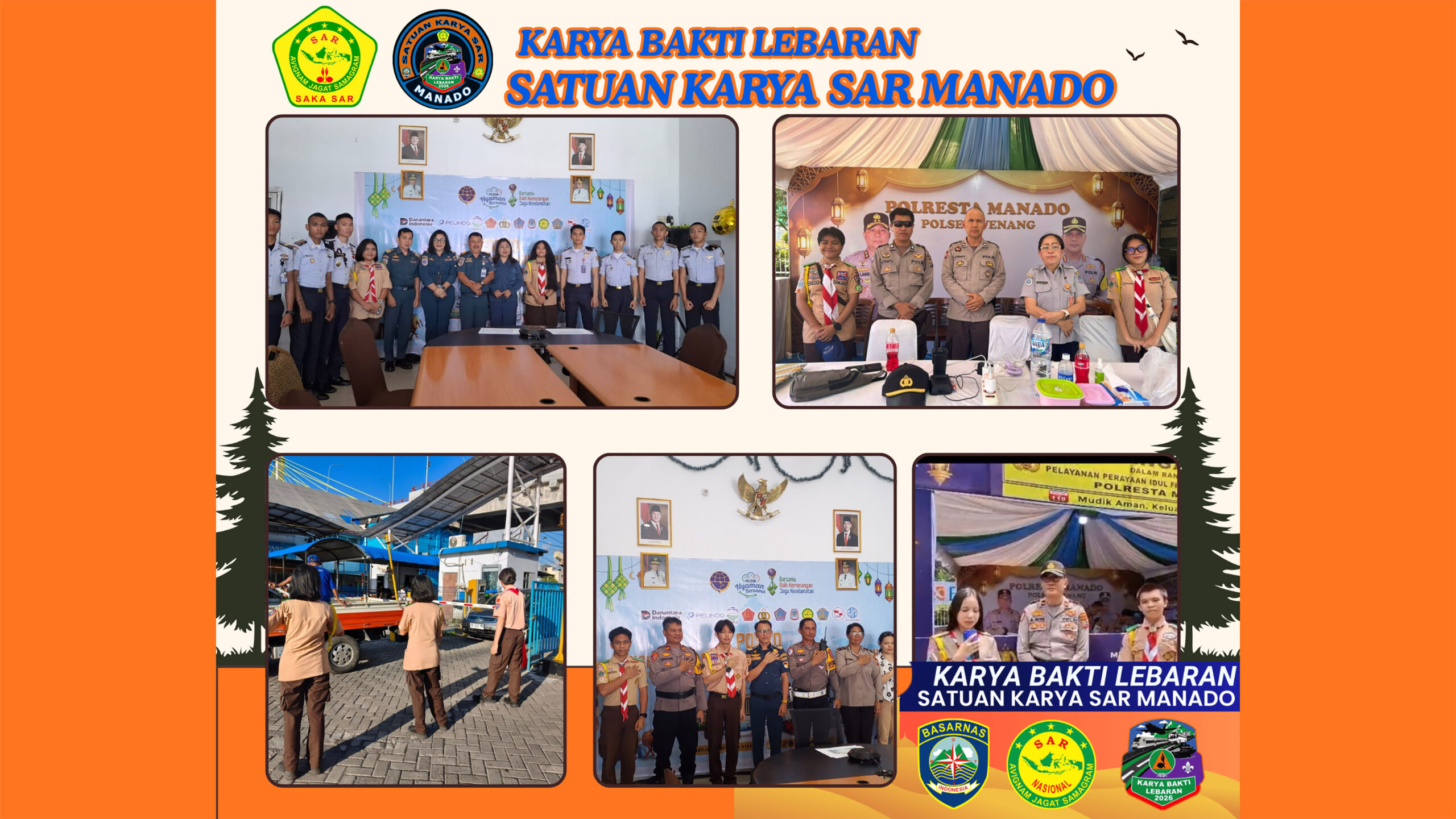 Di Pos Pelayanan Pelabuhan Manado, anggota Saka SAR terlibat dalam berbagai aktivitas, mulai dari membantu memberikan informasi kepada penumpang, memantau situasi kedatangan dan keberangkatan kapal, hingga bersiaga menghadapi kemungkinan keadaan darurat. Sementara itu, di Posko Keamanan Taman Kesatuan Bangsa, mereka turut membantu pengamanan area publik yang masih ramai dikunjungi warga yang menikmati suasana libur Lebaran.