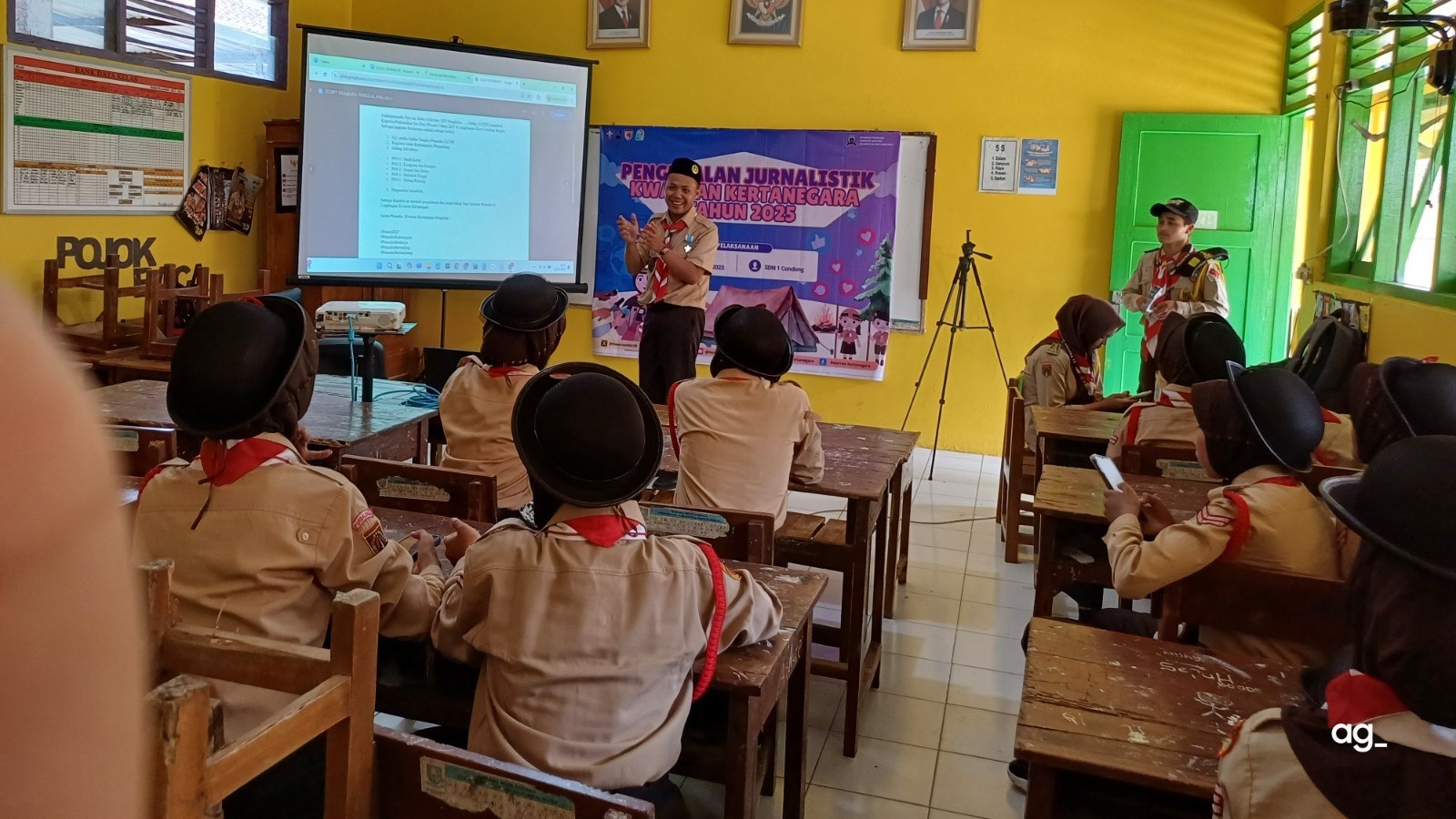 “Pramuka bukan hanya belajar tali-temali dan baris-berbaris. Pramuka juga harus bisa menulis, bercerita, dan menyebarkan kabar baik. Dari tulisan yang sederhana, kita bisa menunjukkan bahwa kegiatan Pramuka itu seru, mendidik, dan penuh nilai positif.” Ujar Kak Agung di hadapan para peserta.