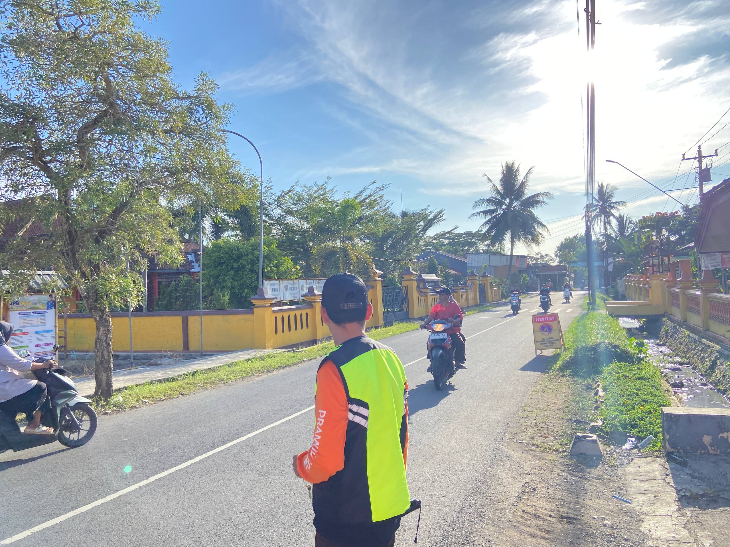 Menanggapi situasi tersebut, anggota Pramuli dengan sigap turun langsung ke lapangan untuk mengatur arus lalu lintas demi menjaga ketertiban dan keselamatan pengguna jalan. Dengan penuh tanggung jawab, mereka membantu mengurai kepadatan kendaraan yang sempat menumpuk di sekitar lokasi kegiatan.