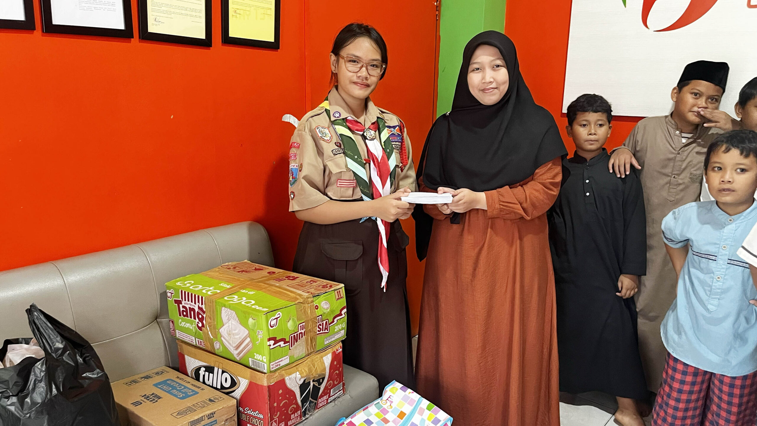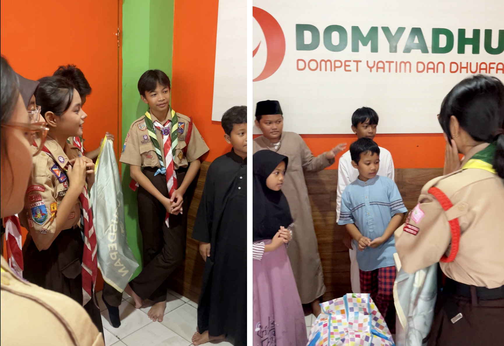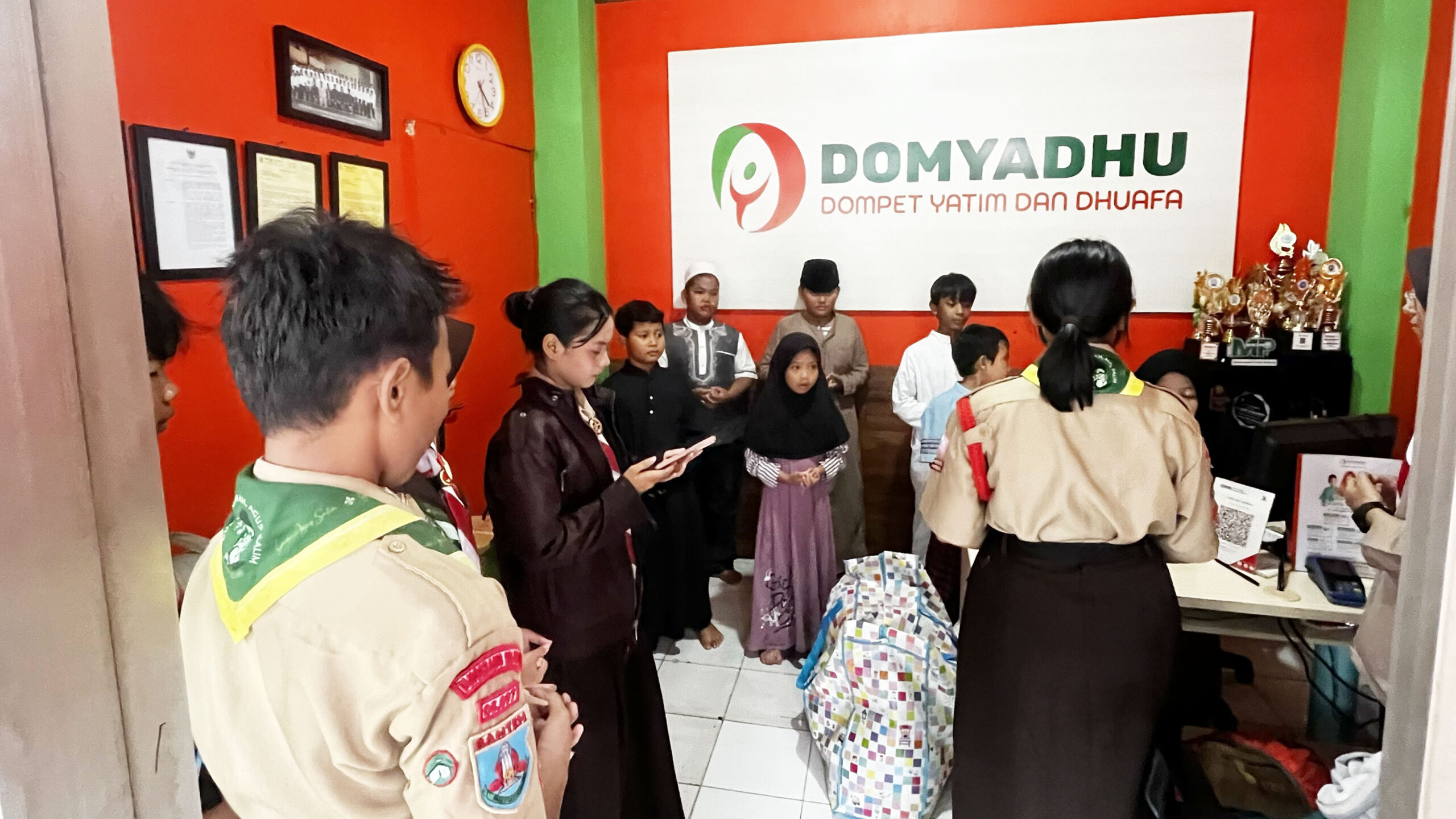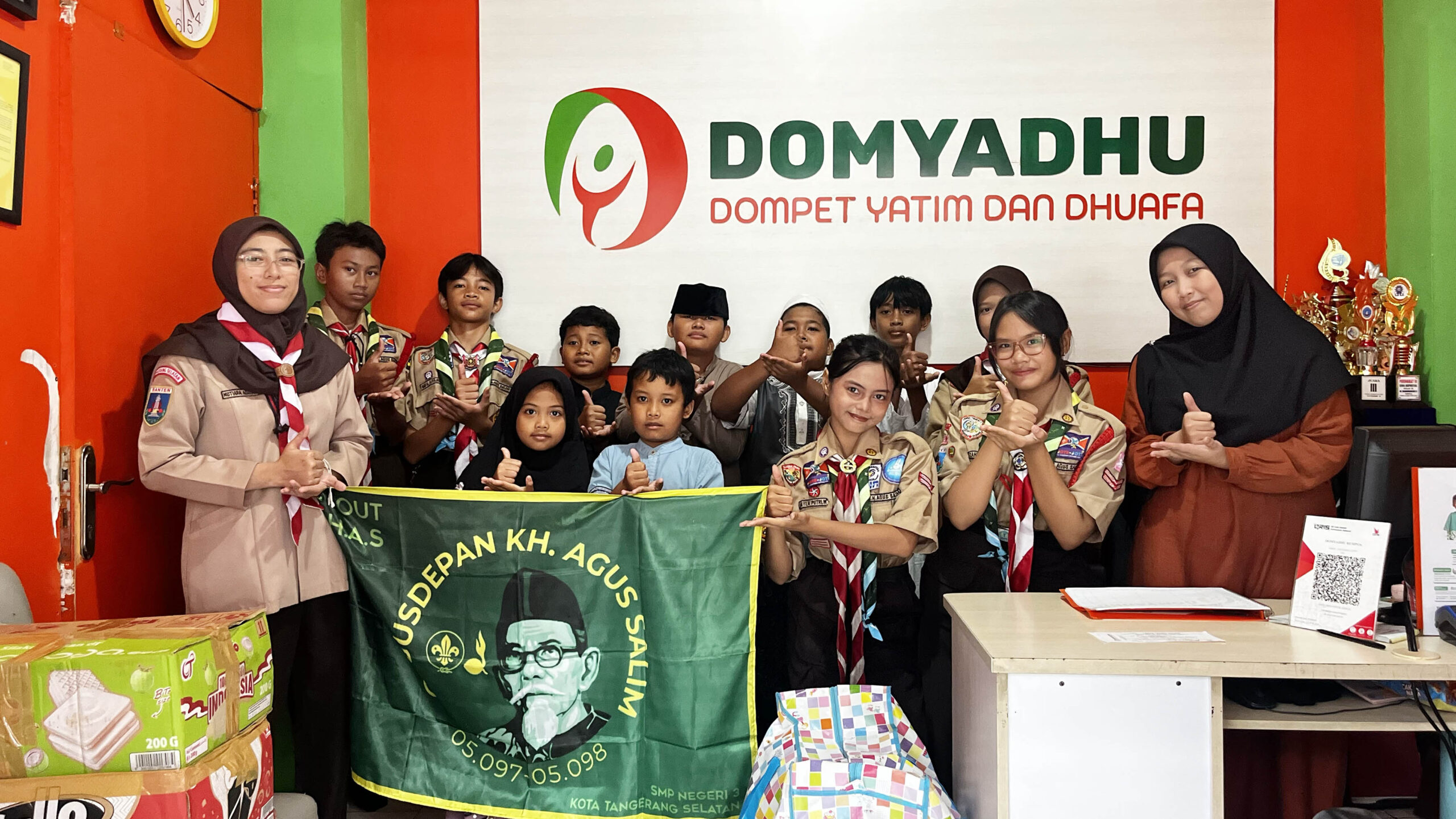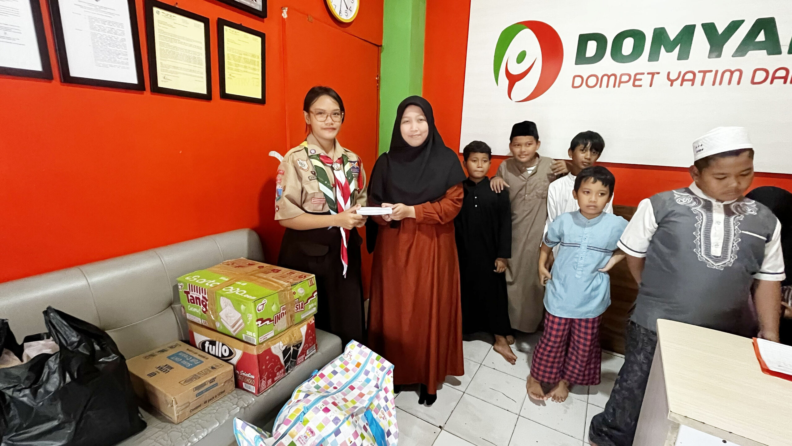 Donasi disalurkan langsung kepada 20 anak yatim piatu dan dhuafa di Yayasan DOMYADHU yang berada di kisaran usia 7 hingga 13 tahun di Rempoa, Ciputat Timur. Para anggota Penggalang K.H. Agus Salim bertemu langsung dengan adik-adik di yayasan untuk menyerahkan bantuan, menciptakan suasana kebersamaan yang hangat dan penuh keceriaan.