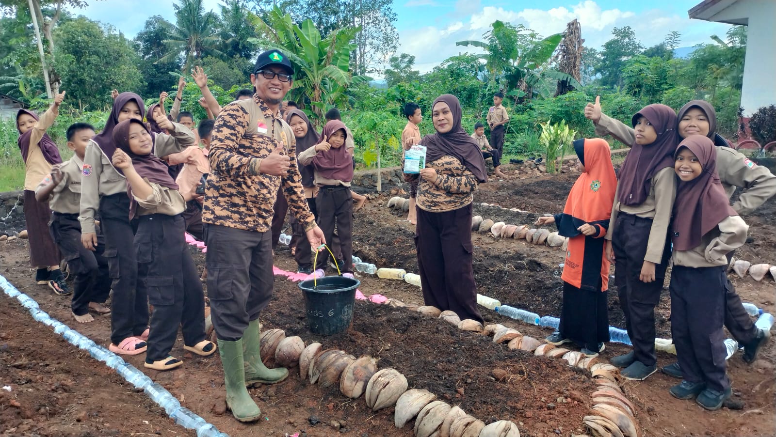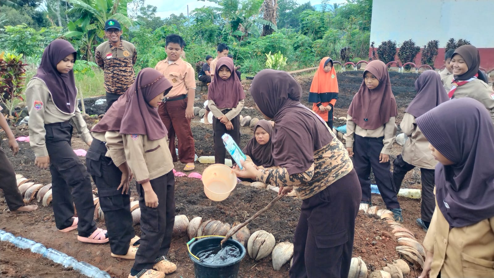 Sementara itu untuk penggunaan limbah botol plastik, kakak Agustina, SPd, MPd didampingi kakak Jamaluddin, SPd menjelaskan bahwa penggunaan limbah botol plastik sebagai penahan bedengan di kebun tersebut adalah bentuk inovasi sederhana. Kami ingin anak-anak paham bahwa limbah plastik bisa menjadi bermanfaat jika kita kreatif. Ini adalah implementasi nyata dari cinta alam dan kasih sayang sesama manusia, serta sikap hemat dan bersahaja yang ada dalam Pramuka.” ungkap Kak Agustina yang juga selaku Tenaga Pengajar di sekolah tersebut.