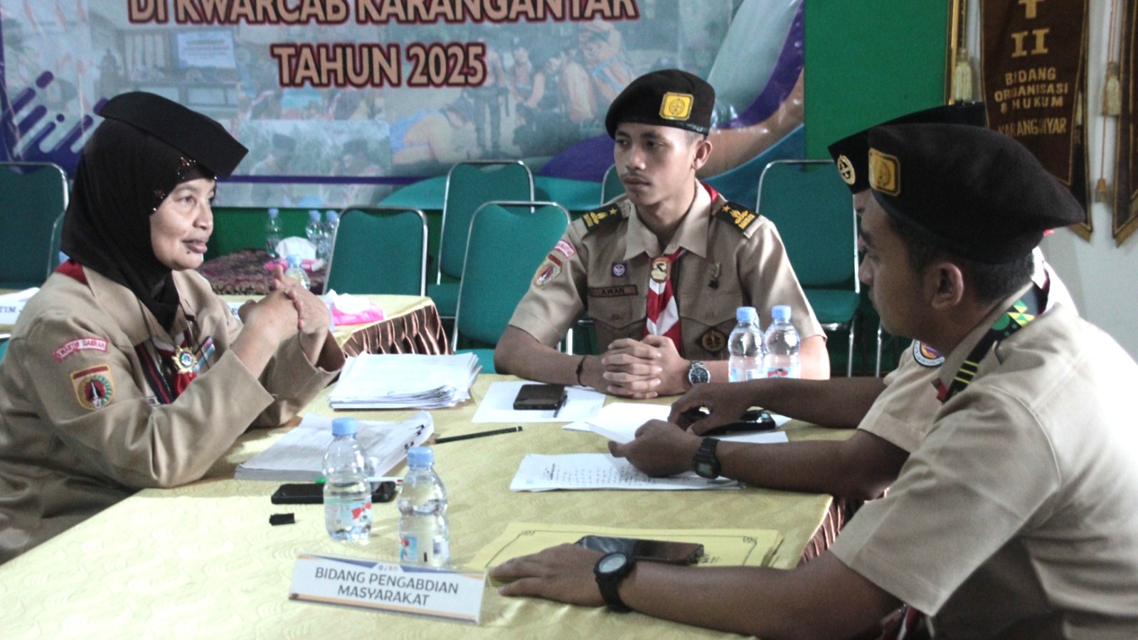 PRAMUKA.ID – Gerakan Pramuka Kwartir Cabang (Kwarcab) Karanganyar menerima Visitasi Penilaian Kwartir Cabang Tergiat Kwartir Daerah (Kwarda) Jawa Tengah di Aula Kwarcab Karanganyar, Minggu (19/10-2025).